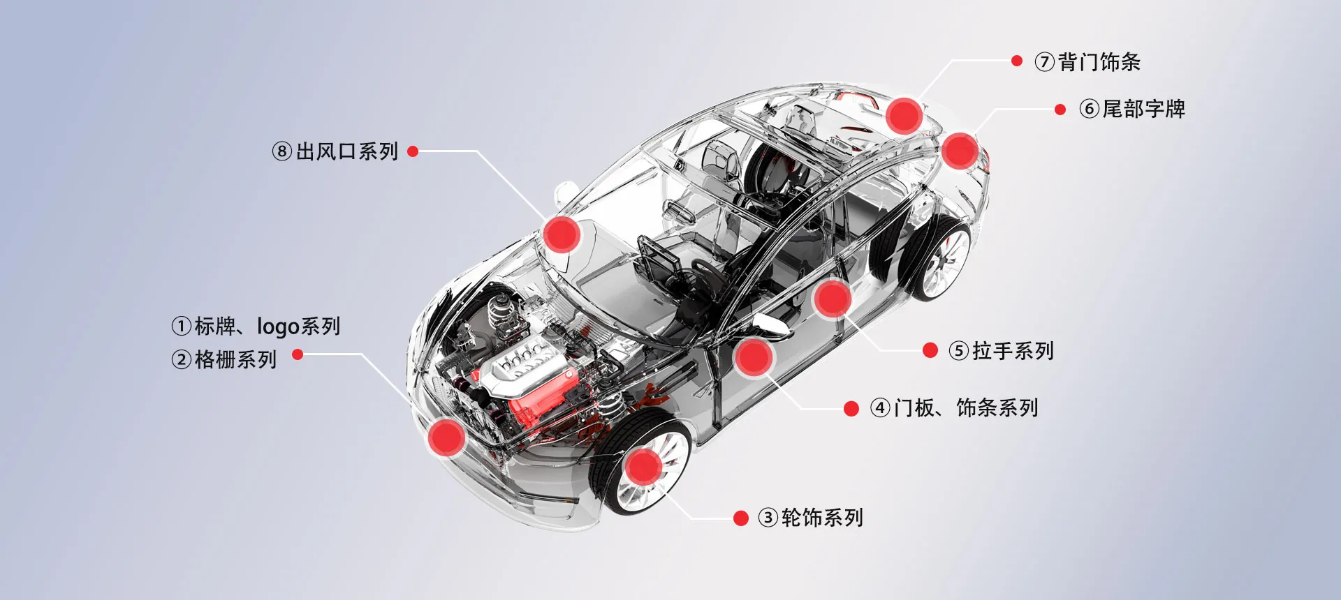 宁波希贵汽车零部件有限公司成立于2008年,是一家从事汽车内、 外饰件集产品设计、开发、生产一体化专业生产汽车零部件、内外饰件生产型企业,占地面积13198 平方米,总建筑面积 10800平方米,公司拥有高精度注塑机、涂装生产线及专业 国际一流水平全自动电镀生产线2条,专业开发生产:电镀 标牌字牌、格栅、饰条、车轮盖、空调出风口、门拉手等内 外配套企业,电镀种类,六价亮铬、三价亮铬、哑光珍珠镍、 三价哑光珍珠镍,目前为上汽大众、一汽大众、上汽通用、 东风日产、吉利、沃尔沃等企业做二次配套服务。